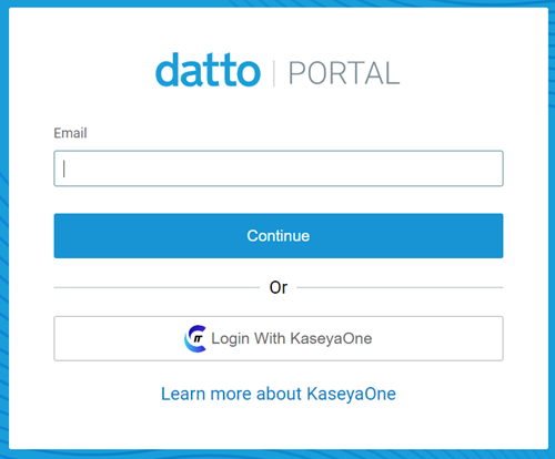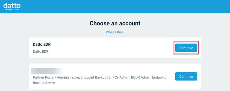- If you have a subscription to another Datto Partner Portal module (such as Datto Backup, Datto EDR/AV, SaaS Protection, or Datto RMM), follow the steps in the Welcome email to log into the Partner Portal. After logging in, you will be taken to the account selection page.