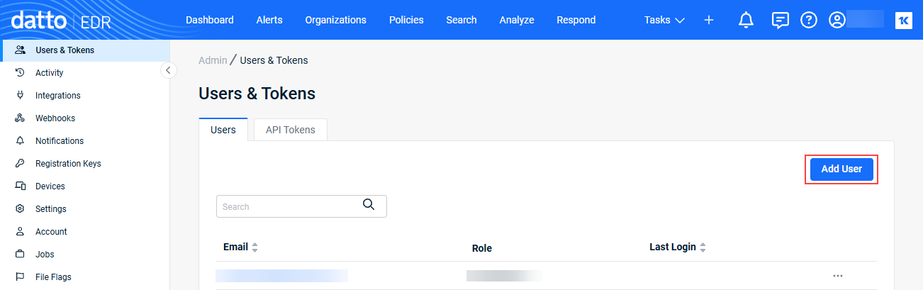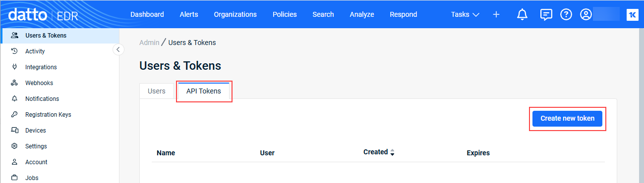 To integrate with RMM, you will need to create an API token on the Admin > Users & Tokens page.