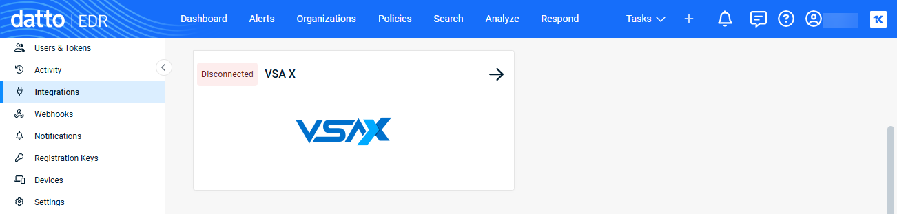 You can integrate with VSA simply by clicking Integrations in the navigation menu and clicking the VSA tile.