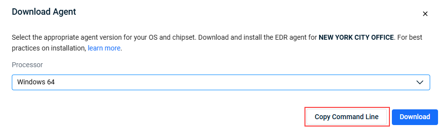 Clicking the Copy Command Line button will install the agent to all of the selected location’s devices.