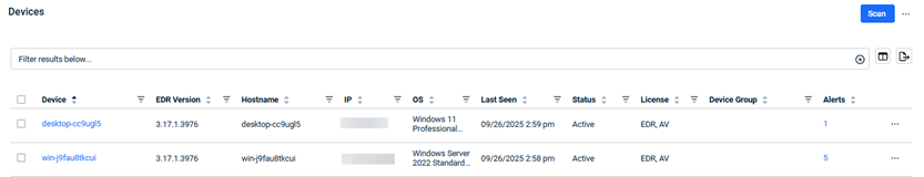 - Disabled: In the device list within your EDR portal, for the applicable device, click the ellipses menu (