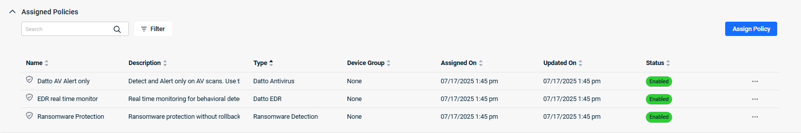 Ellipses menu; enables you to enable, disable, or unassign the policy. |