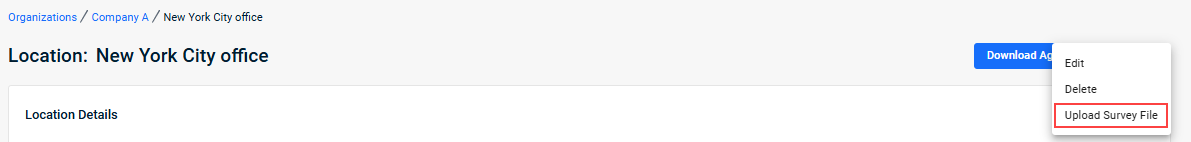 Click the name of the location into which you'd like to import the survey. When possible, we recommend that you use the same location with which the offline endpoint is associated.