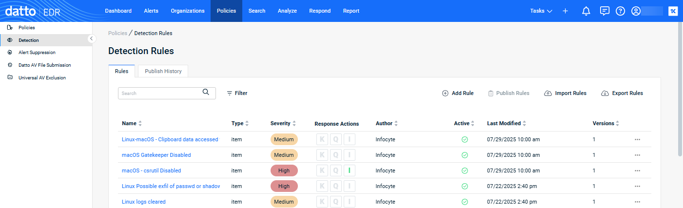IMPORTANT Once you create or edit an existing rule, you'll need to ensure that it's active and then click Publish Rules on the Detection Rules page before it will go into effect.
