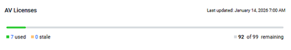 - Redirects: Clicking the number in the used or stale fields opens the Devices page filtered by AV license type and selected status.