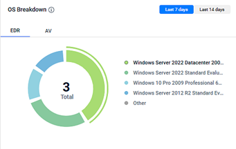 - Stale (Yellow): Devices with an AV license that have not checked in recently. For more information regarding EDR agent statuses, refer to Agent Status definitions.