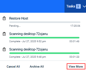 NOTE The drop-down menu lists all recent tasks. To clear the list, click Archive All. To cancel all pending and running tasks, click Cancel All.