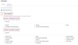 You can select website categories to block within two threat categories: Security Categories to Block and Content Categories to Block. Select the check box of each category for which you would like to block access.