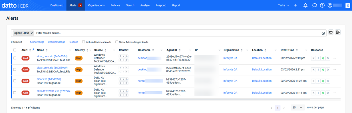 NOTE If your subscription does not include Datto EDR service, you will only see the Datto AV alert type. |