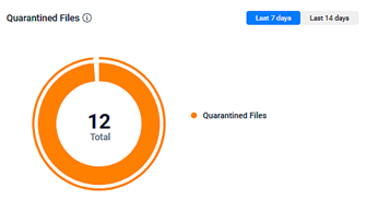 The Quarantined Files widget displays the number of files quarantined by the Datto AV engine during the selected timeframe. For detailed information, select Respond > Quarantined Files.