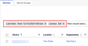 - Redirects: Clicking the number in the used or stale fields opens the Devices page filtered by EDR license type and selected status.