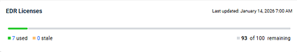 - Used (Green): Agents with an active EDR license that are not in a stale status.