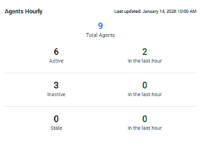 Gain real-time visibility into device status with the Agents Hourly widget. This widget displays the number of devices and their statuses for your EDR instance, refreshing every hour. By monitoring hourly trends, you can quickly identify and address issues impacting agent health.