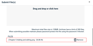 - Drag the applicable file to the Drag and drop field or click in the field to select the file. If necessary, you can delete the file and select a different one.
