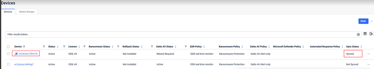 You can now identify and filter devices by their RMM sync status. A new Sync Status column in the Devices table shows whether a device is synced with VSA X or Datto RMM, streamlining device management.