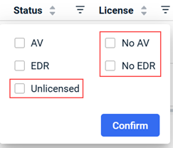 We’ve restored additional license filtering options in the Devices table. You can now filter devices by Unlicensed, No AV, No EDR, in the License column, improving visibility and control.