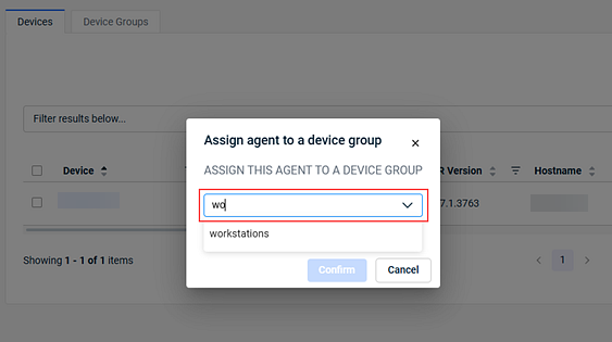 TIP You can filter the dropdown list by entering the first few letters of the device group name.