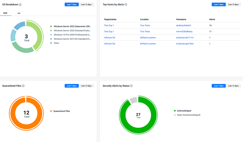 The following widgets are still part of the Dashboard and now include Last 7 days and Last 14 days filters: