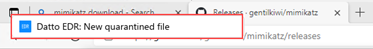 When a file is quarantined by Datto AV: The banner helps users quickly identify when a potential threat has been isolated, prompting them to review quarantine history in the desktop Interface. The banner only appears when the desktop UI is open or minimized and the AV policy is in Protect & Quarantine mode.