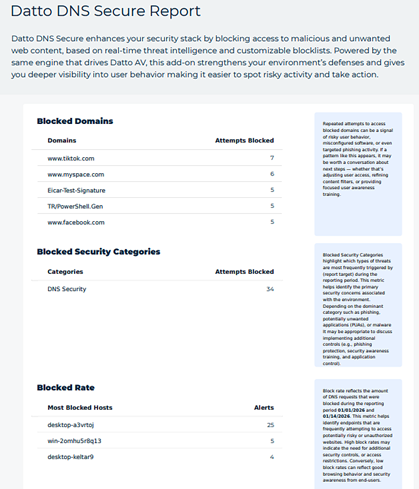 You can now generate DNS Secure reports to provide actionable insights into your clients’ DNS security posture. The report highlights:
