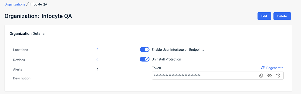You can now manage uninstall protection at the organization level. Each organization has a unique uninstall token, and you can enable or disable uninstall protection per organization.