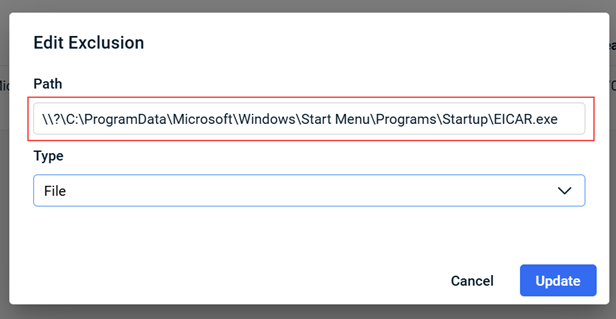 Previously, lengthy Universal AV Exclusion paths were truncated in the list view, making it difficult to view the full path without zooming out. Long Universal AV Exclusion paths are now easier to read at standard browser zoom levels.