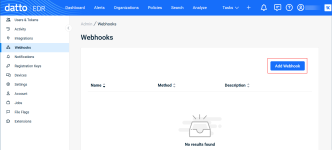 Datto EDR webhooks can and should be created by administrators and vendors who are building integrations with the platform, and vendors who are building connectors to middleware products.