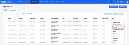 - For the applicable device, click the ellipses menu in the last column and select Assign Device Group.