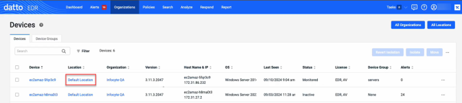 When a device is assigned to a location, it will try to apply one policy from each available type, such as EDR, AV, Ransomware, and automated threat response policies.