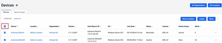 - On the Devices tab, select the check box to the left of the Device column header. This selects all devices.
