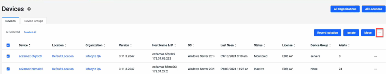 NOTE To unassign a device from a device group, click the ellipses menu in the last column and select Unassign Device Group. The device reverts to the organization or location policies assigned to the None device group