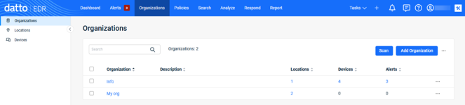 - Datto Antivirus, Datto EDR, and Ransomware Detection policies have been created at the organization level for Organization A.