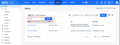 Last Seen | Last date and time that the EDR platform received telemetry from the host. |