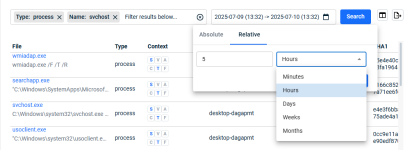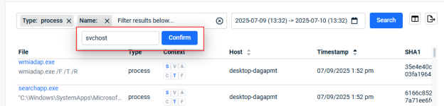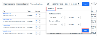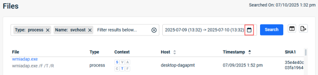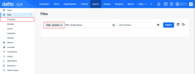 The Search page enables you to filter, sort, audit, and search granular telemetry records received from protected endpoints within the last nine months.