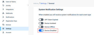 Users can now configure system notifications to be raised for Disabled EDR agent events, enhancing your overall visibility into the estate health.