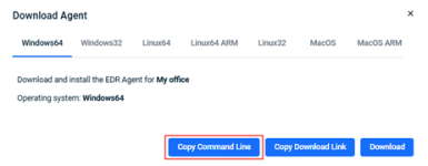 We have updated our device download and install commands. Previously, the commands did not include the ability to automatically download the agent. Users had to perform steps to download the agent to an endpoint and then run the install commands. Now you can go to your location, click the Download Agent button, then click the Copy Command Line button.