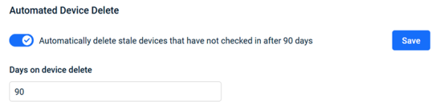 Before enabling this feature, we recommend verifying your Devices table is clean and up to date. Then, enable the feature and specify a time frame that is safe for your business. For example, may be start with devices that have not been active for 90 days then adjust the number of days as needed.