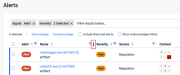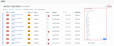 - Select columns: With the Column Options icon, now you can select the columns to display in the Alerts table.