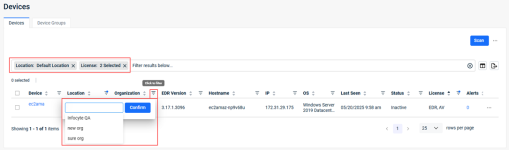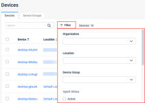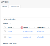 NOTE The redesigned Devices table is available on the selected Locations page for an organization and the Organizations > Devices page.