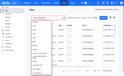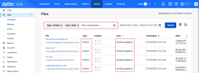 Filters can be combined for more refined searches. In this example, artifact has been entered for the Type filter and desk for the Host filter, so only the files matching both criteria are listed.